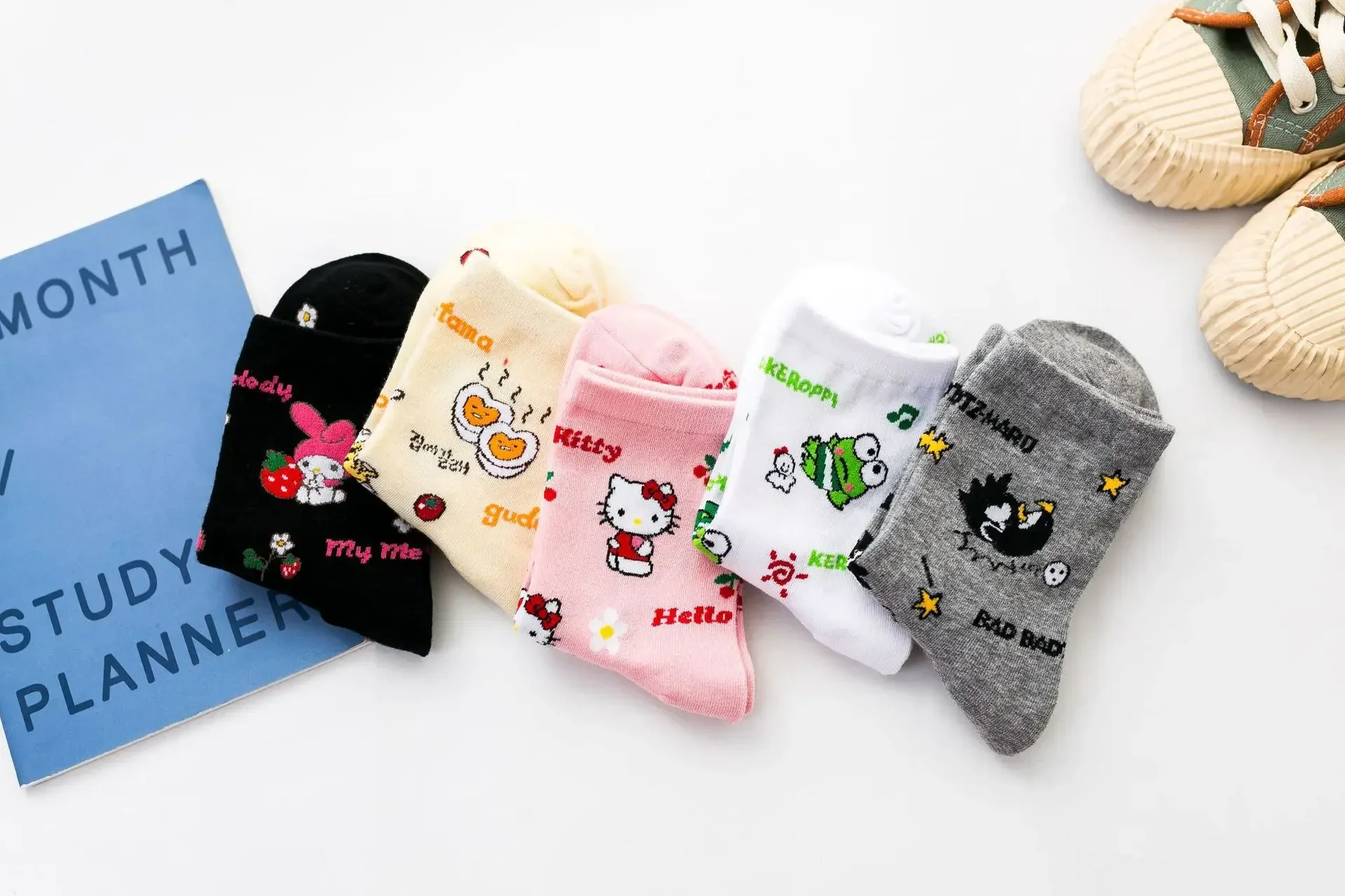 1 paire Sanrio chaussettes mélodie cannelle femmes doux dessin animé Hello Kitty Kirby mignon enfants chaussettes filles petite fille chaussettes