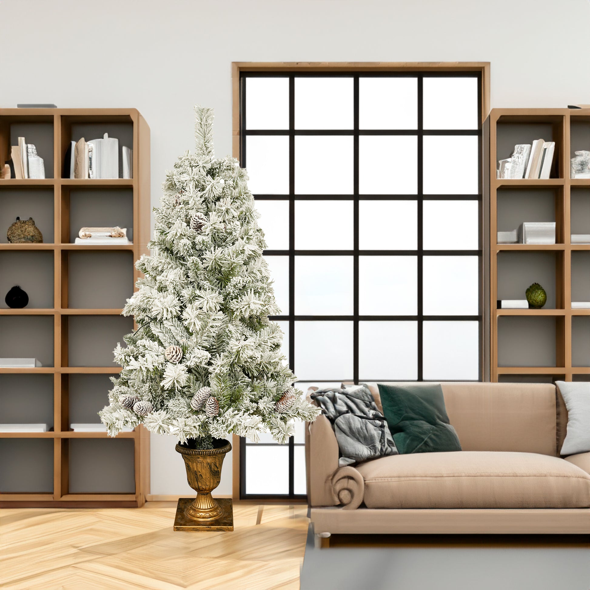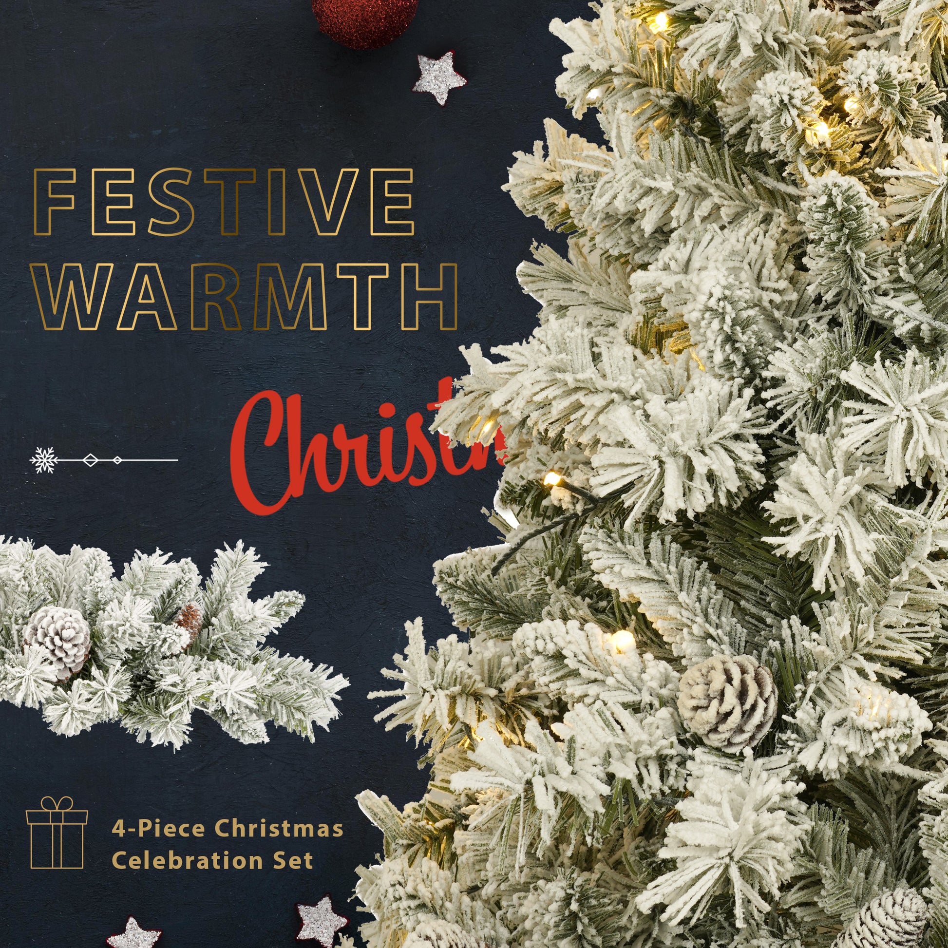 Our 4-piece Christmas tree features 840 branch tips and 325 warm white lights. 4ft entrance tree has 260 branch tips and 100 LED bulbs, Christmas wreath has 120 branch tips and 35 LED bulbs, Christmas rattan has 200 branch tips and 90 LED bulbs.