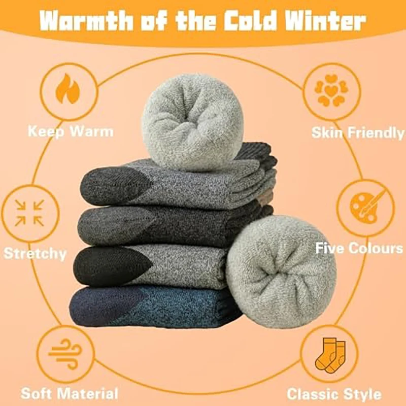 APILEN 5 paires hiver hommes chaussettes affaires nouveau classique thermique chaud épaissi rétro neige chaussettes décontractées