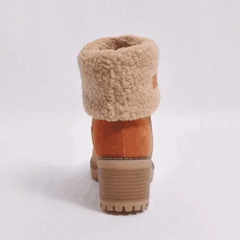 Bottes de neige doublées en polaire pour femmes, grande taille, bout rond, talon moyen, semelle extérieure en caoutchouc, chaud d'hiver, Style décontracté, chaussons en cuir et fourrure