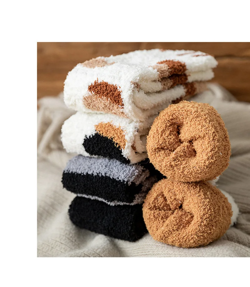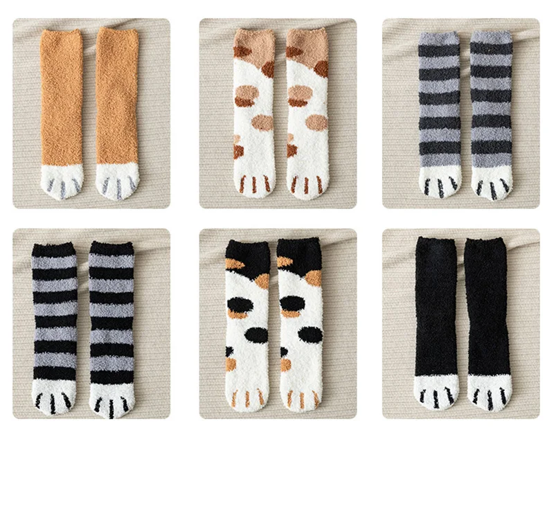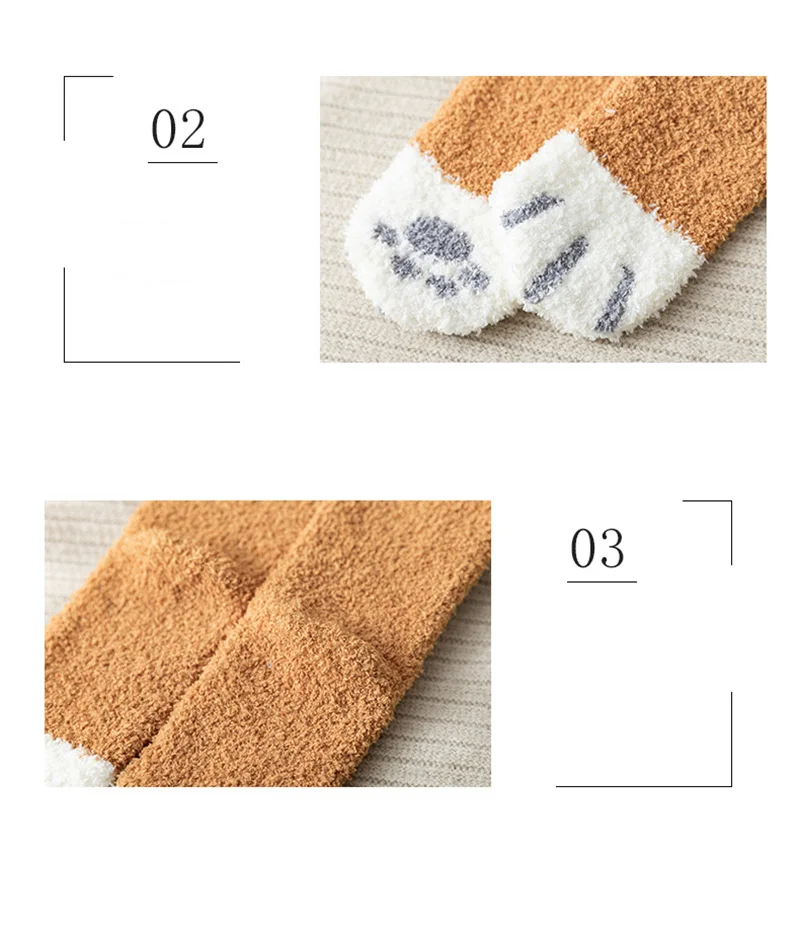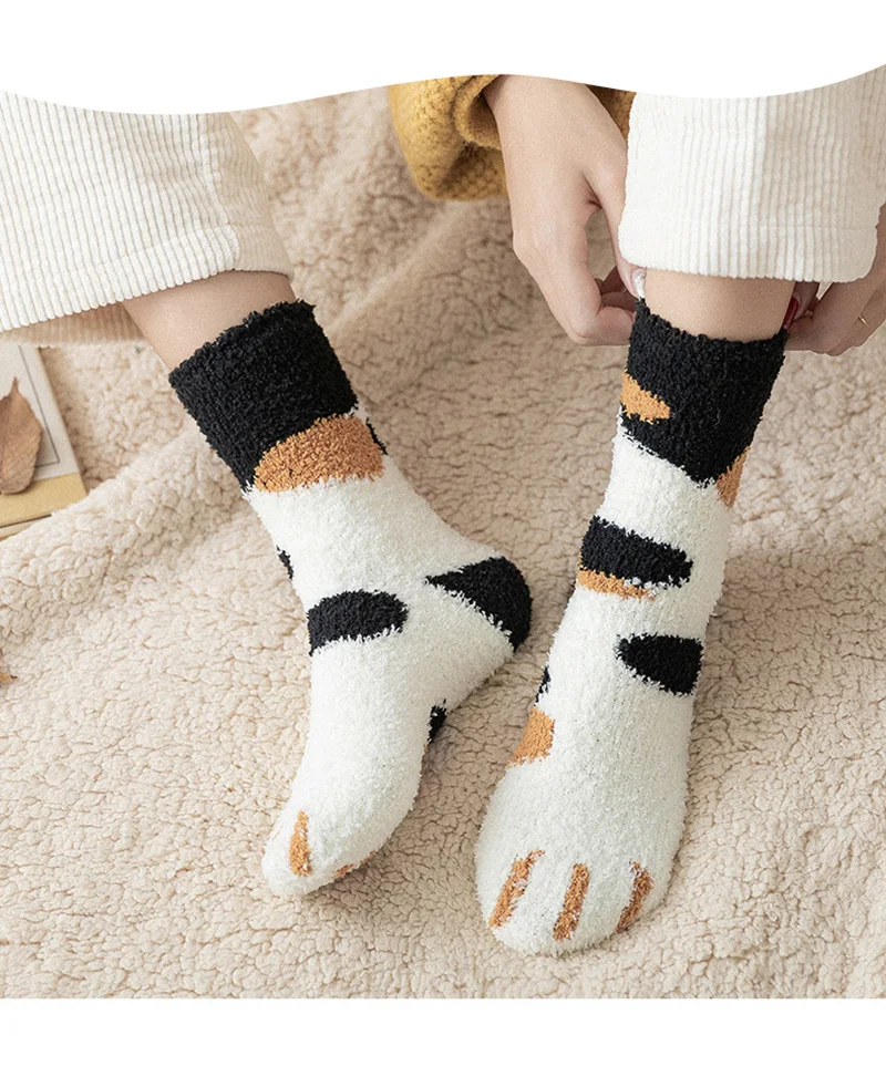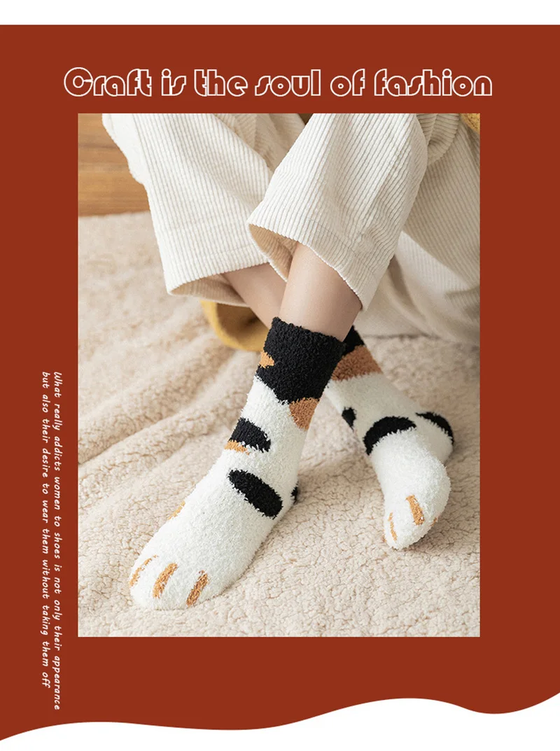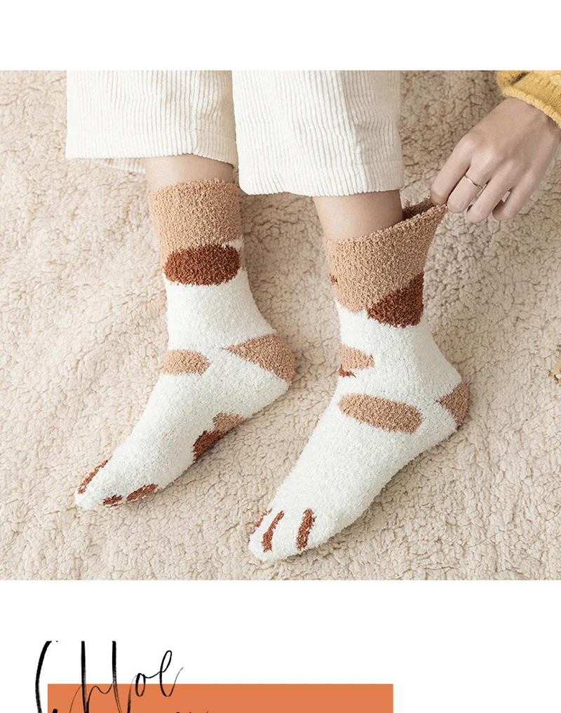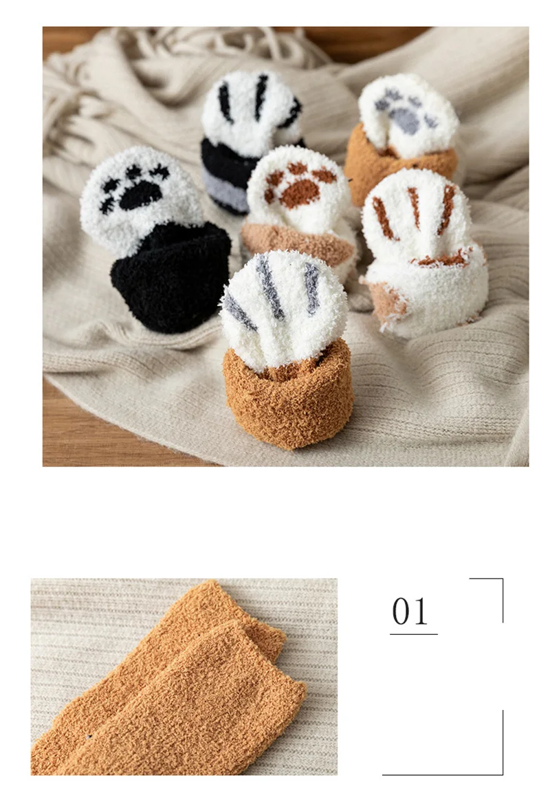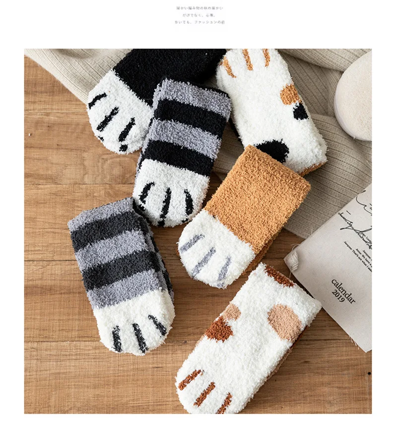 Chaussettes d'hiver pour femmes, chaussettes chaudes en molleton de corail épais, patte de chat Animal, mignonnes, chaussettes de sol douces pour filles