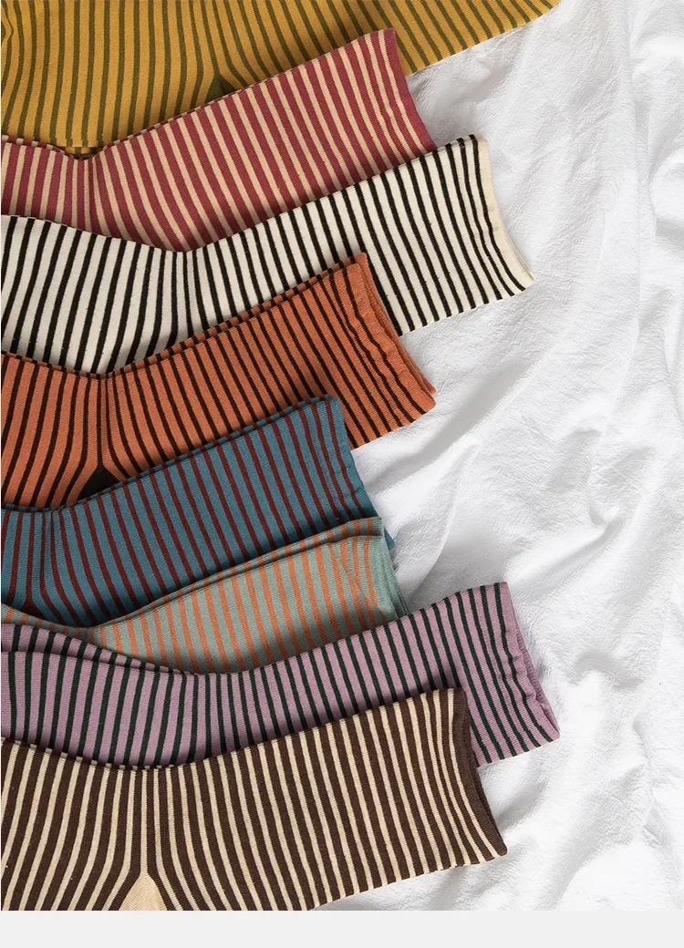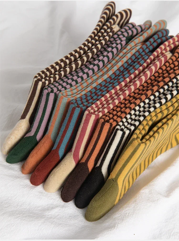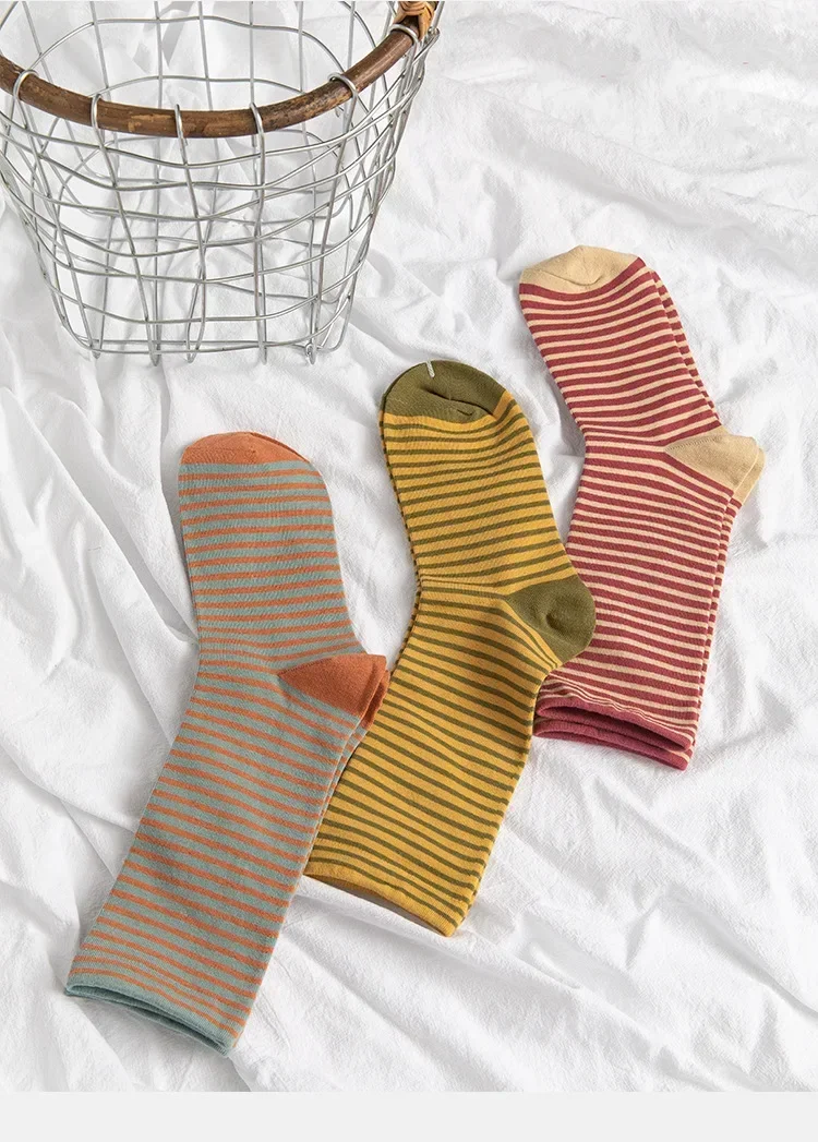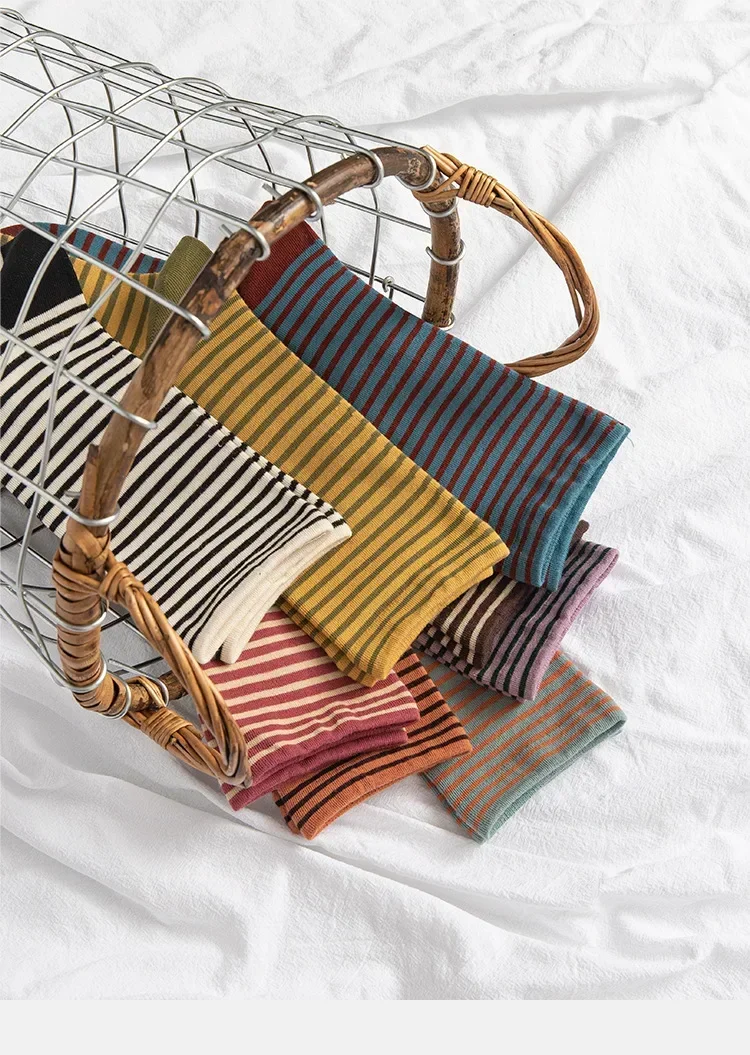 Chaussettes rétro rayées pour femmes, tube moyen, bas en coton, chaussettes coréennes, chaussettes japonaises, printemps et automne