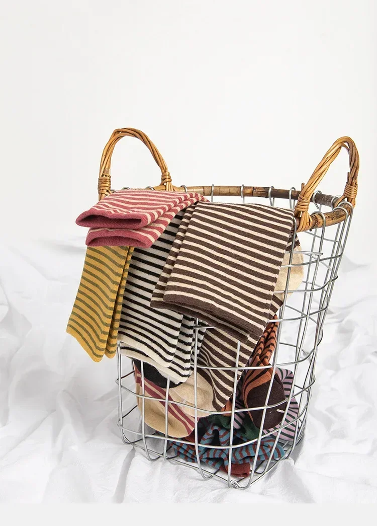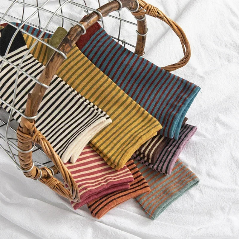 Chaussettes à rayures rétro Chaussettes à tube moyen pour enfants Printemps et automne Bas en coton Bas coréens Chaussettes japonaises