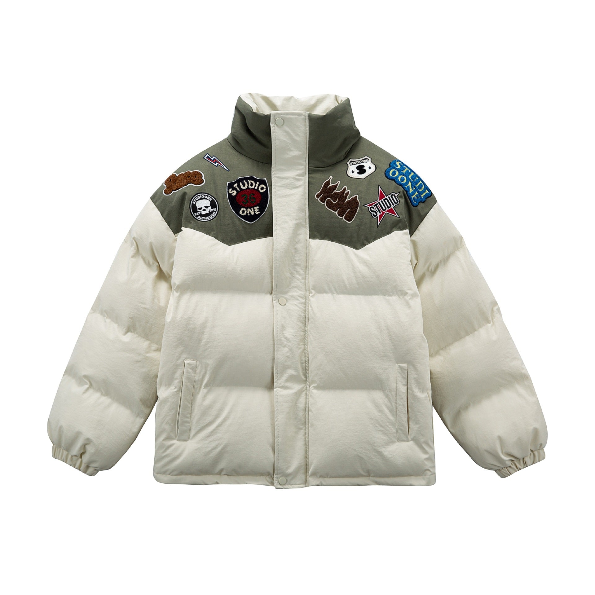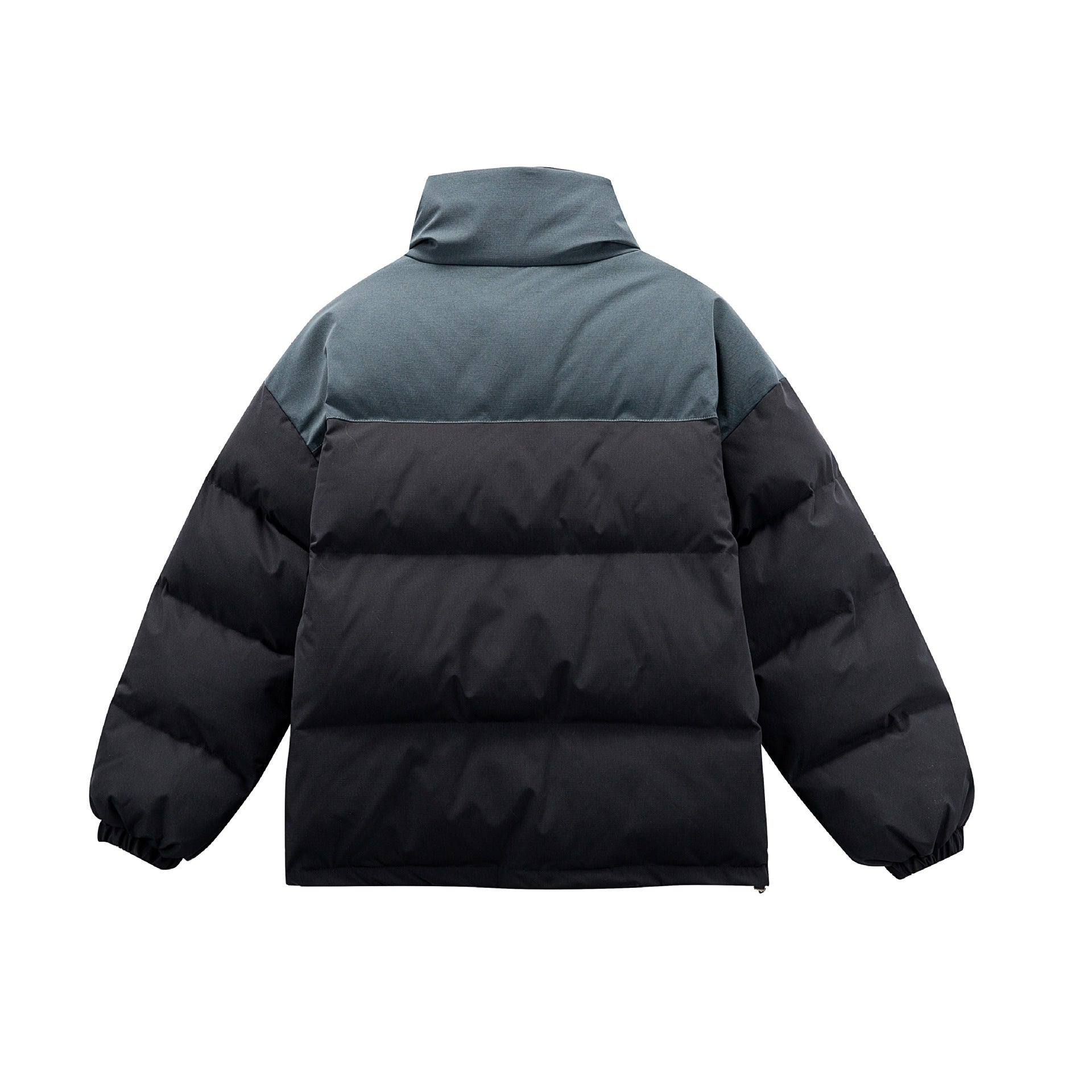 Manteau hiver Color Block Stand-up Collar Button Closure Hooded Cotton Coat