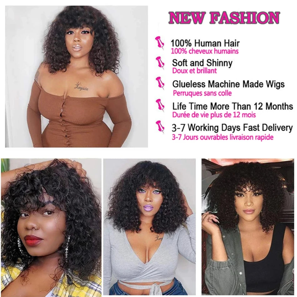 Curly Human Hair Wigs For Women Human Hair Bob Wig Kinky Curly Wig With Bangs Perruque Cheveux Humain Full Machine Made Wig