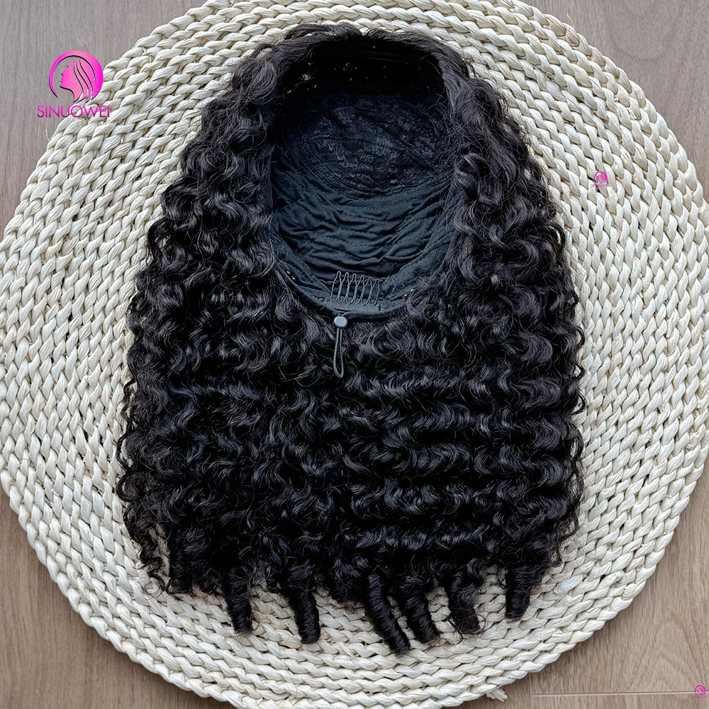 Demi-perruque birmane bouclée sans colle, cheveux naturels, avec cordon de serrage, Clip sans couture, densité 250, pour débutants, pour femmes