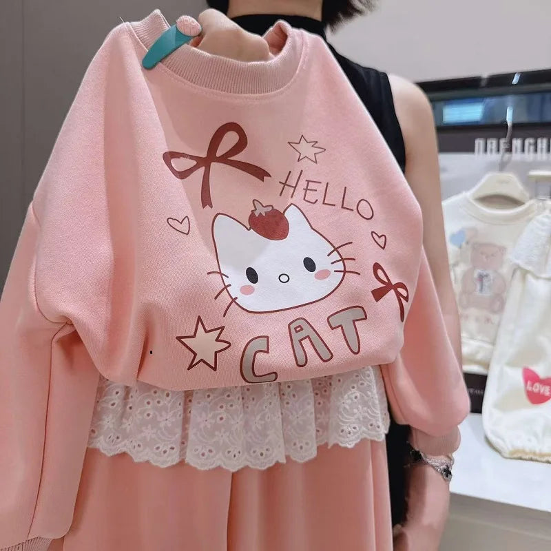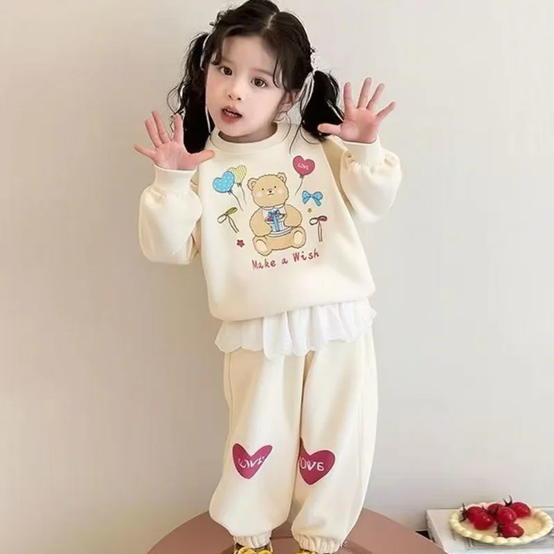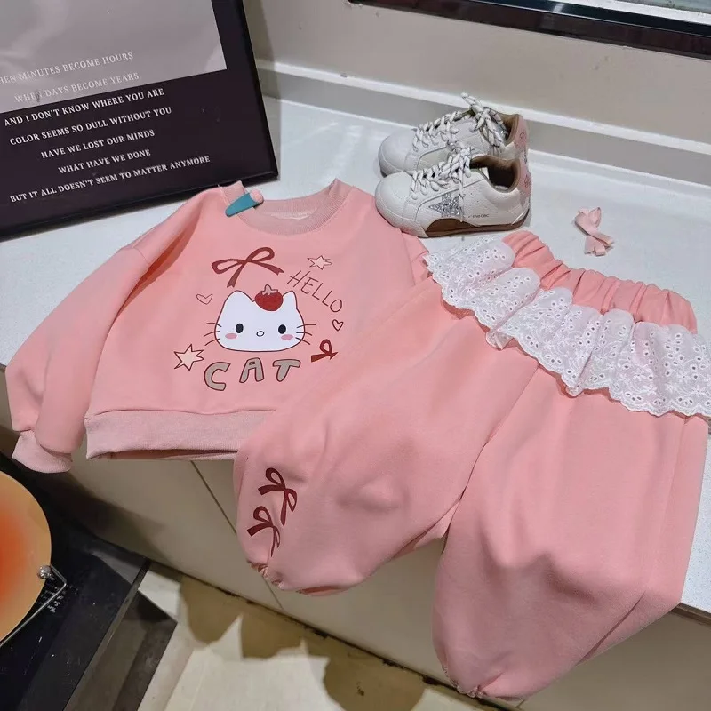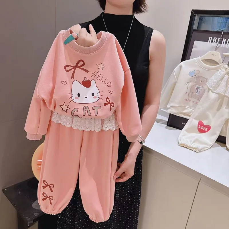 Ensemble de vêtements d'automne pour bébé fille, sweat-shirt et pantalon en dentelle imprimé Animal mignon, costume deux pièces pour enfant, costume à manches longues