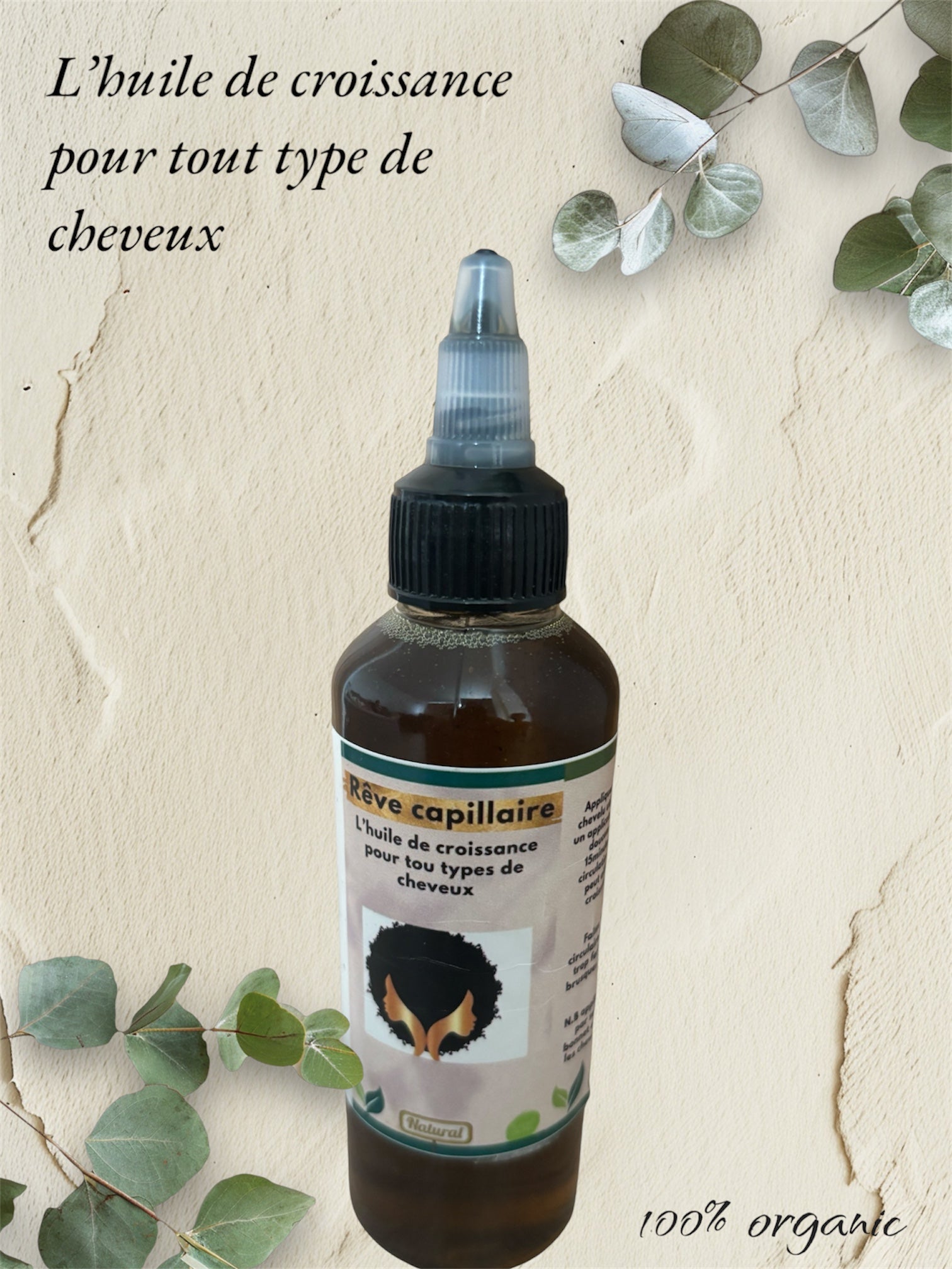 N.B appliquer l’huile 2 à 3 fois par semaine et porter un bonnet en satin pour protéger les cheveux et éviter la casse.