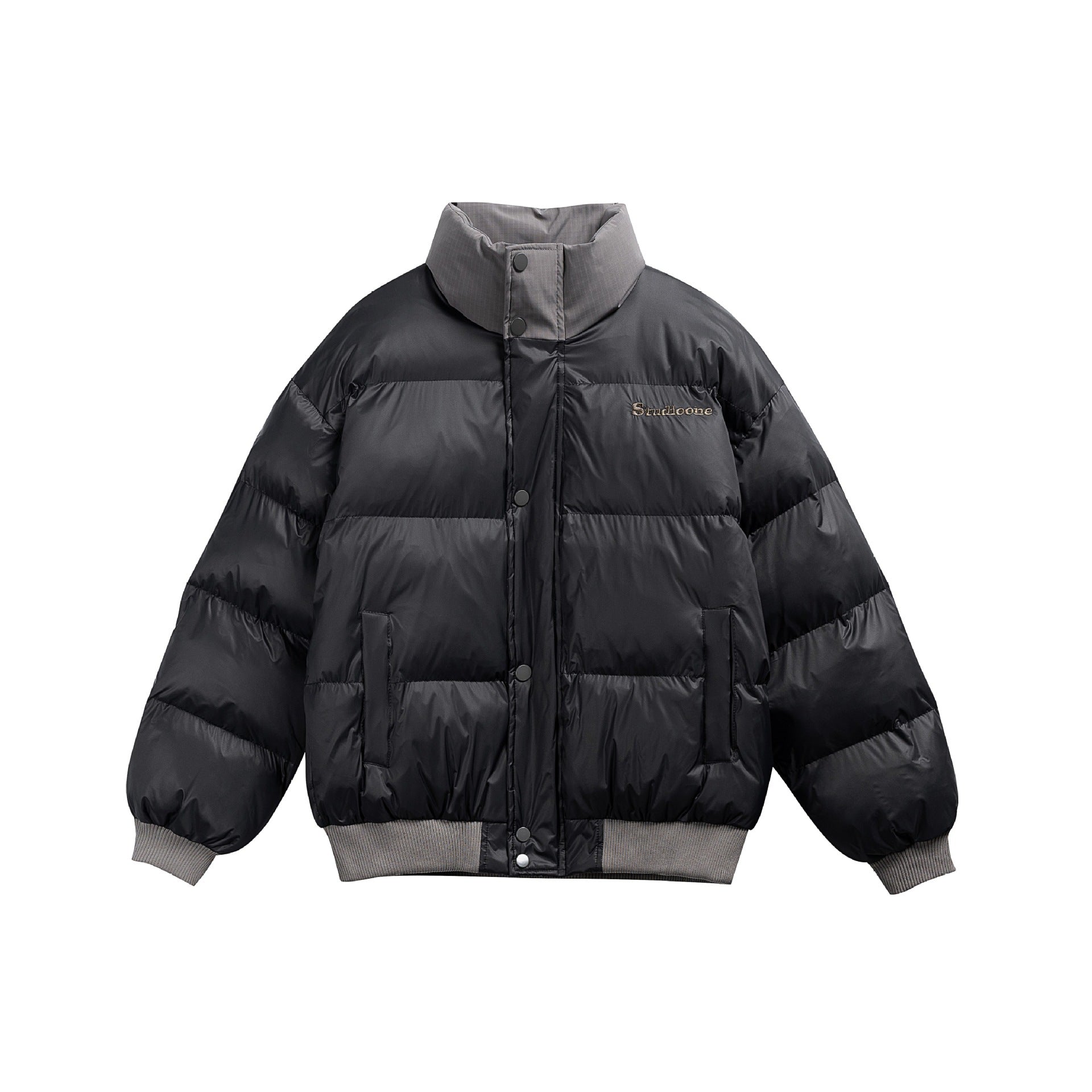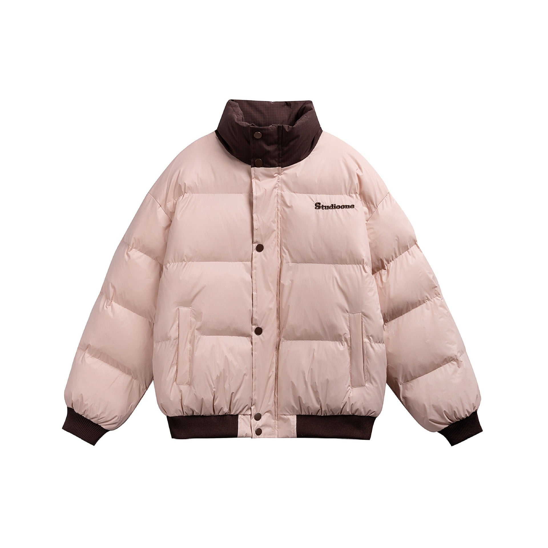 Manteau hiver Letter Embroidery Color Block Stand Collar Short Cotton Coat