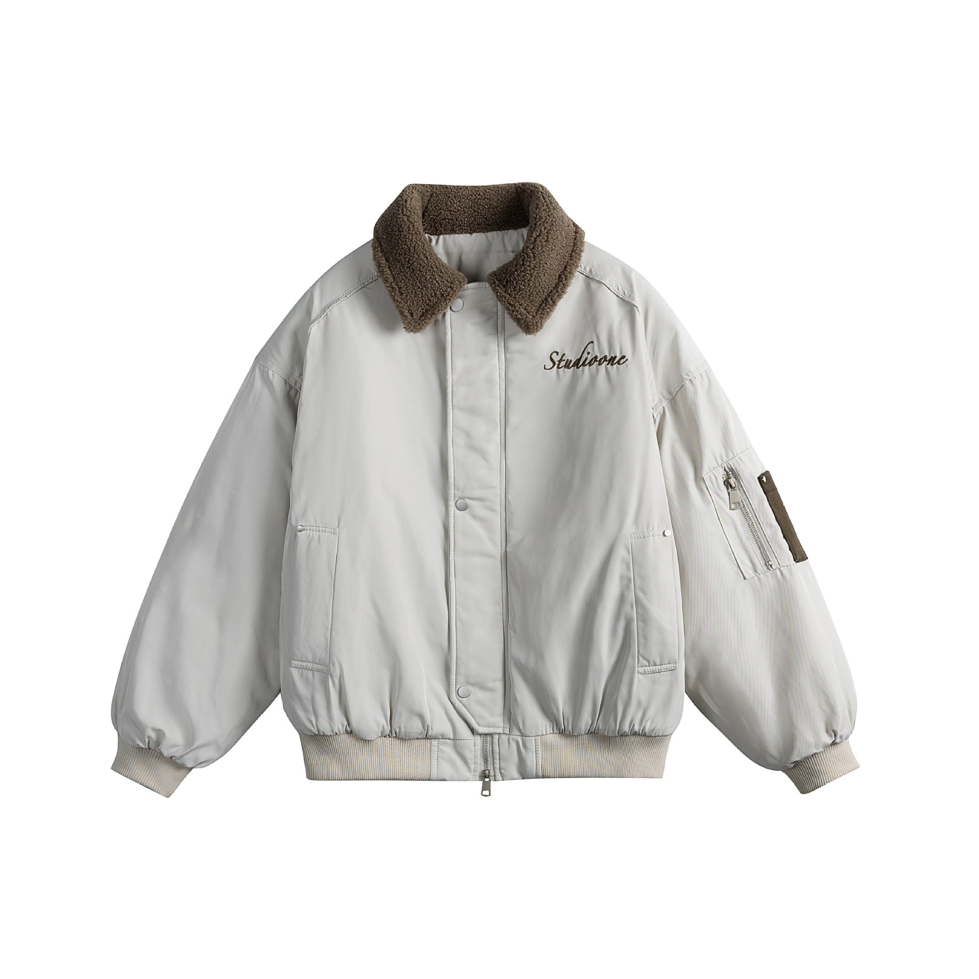 Doudoune hiver Letter Embroidery Sherpa Collar Flight Workwear Cotton Jacket