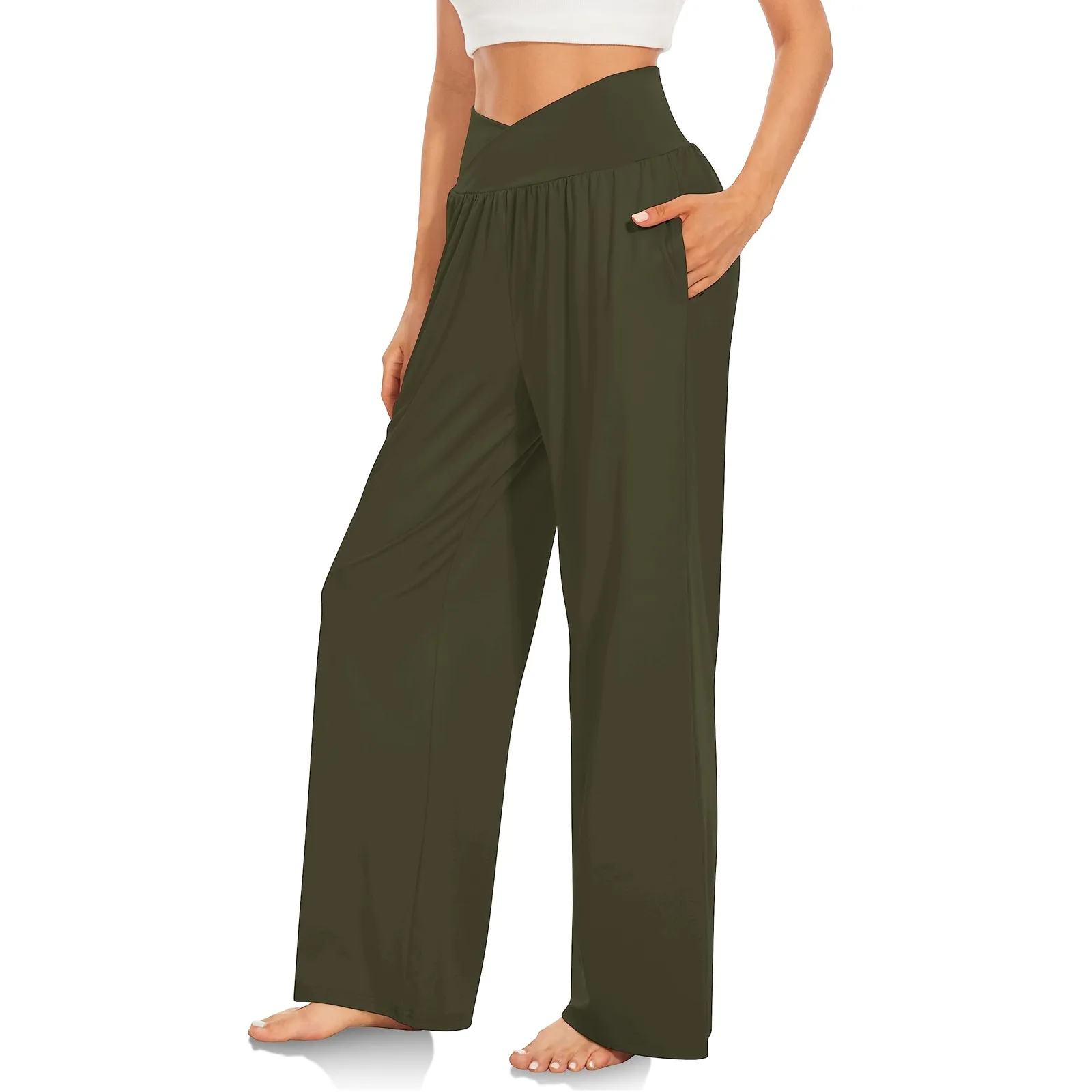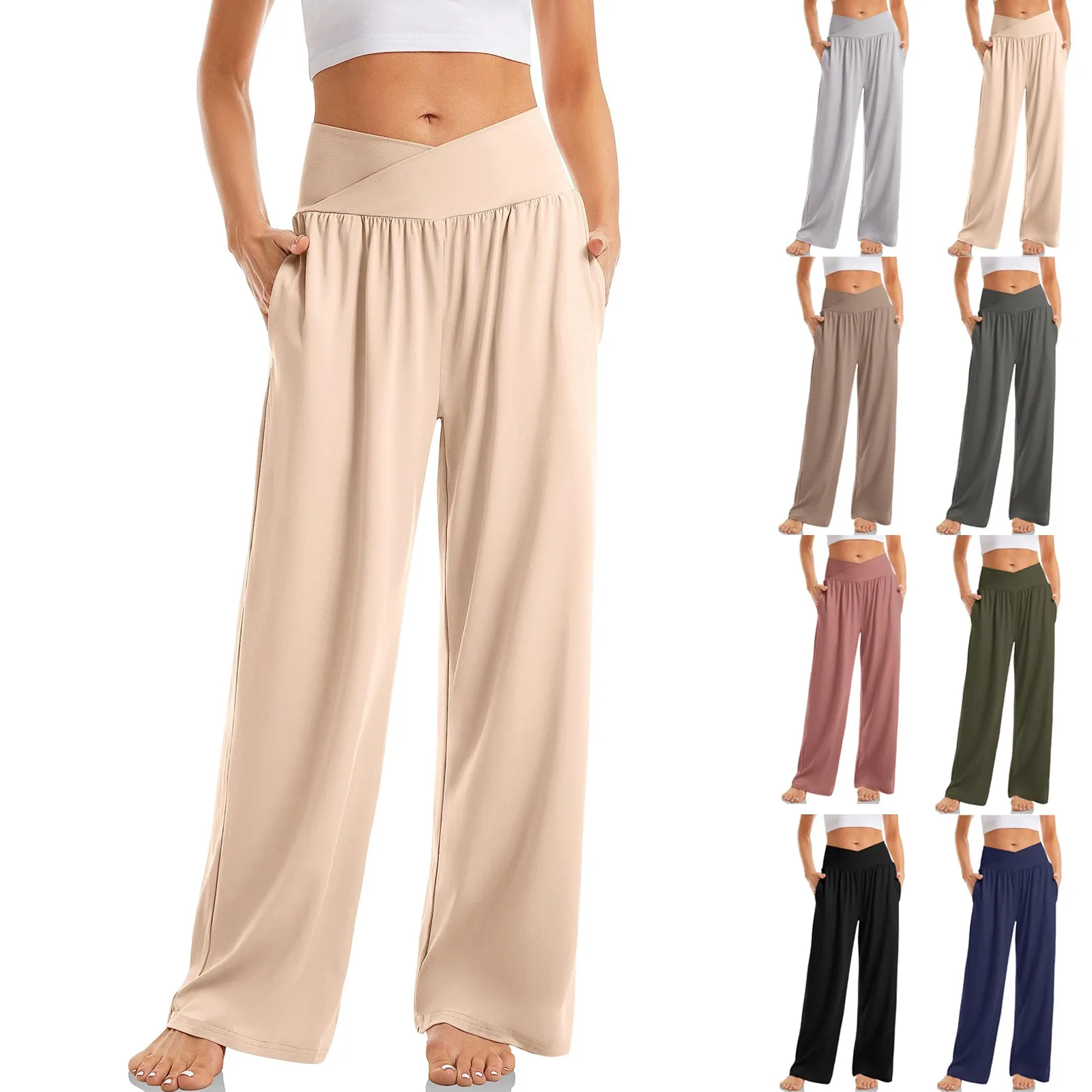 Pantalon à Jambes Larges pour Femme, Survêtement de Yoga, Fitness, Jogging, Taille Haute, Couleur Unie, Document B