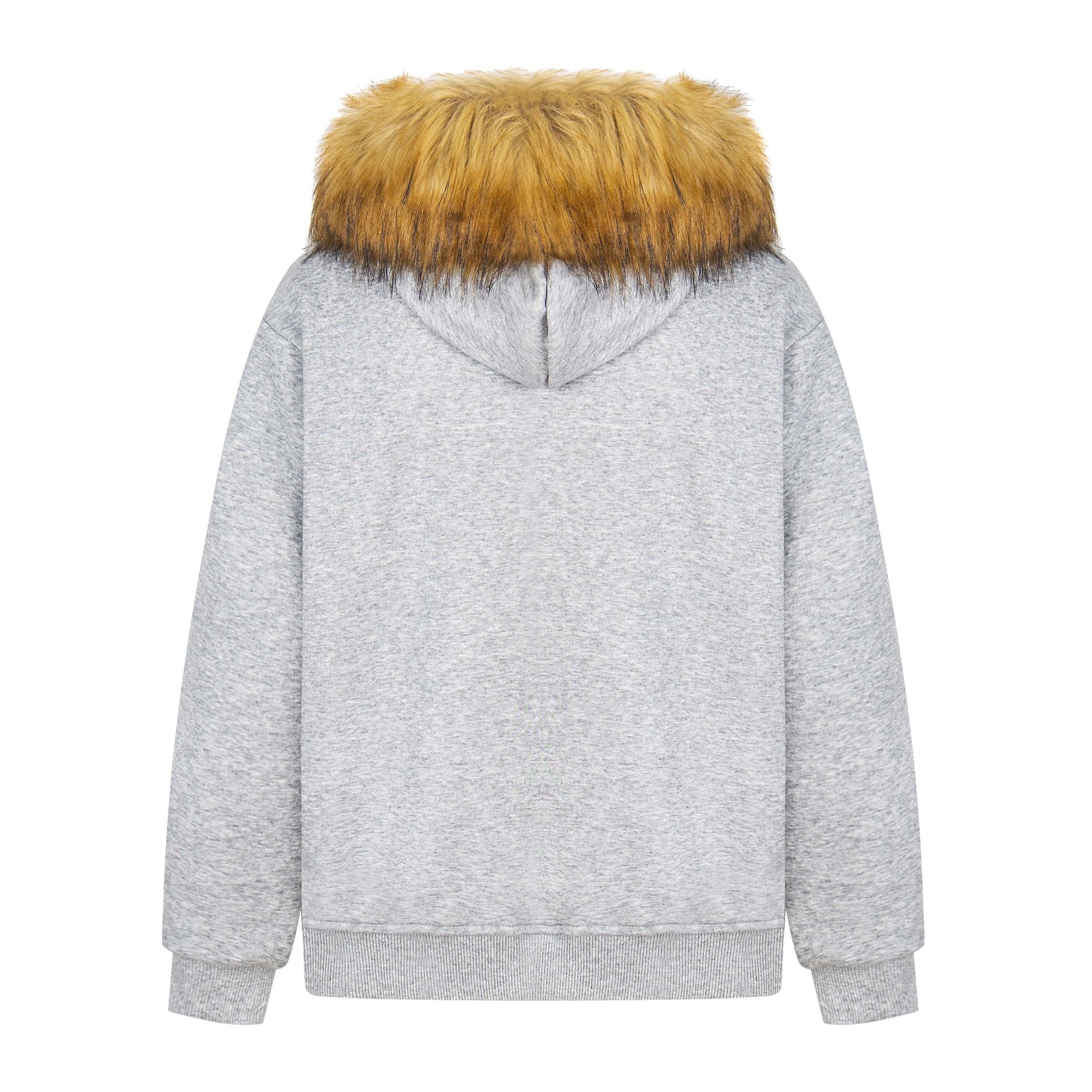 Manteau hiver Retro Letter Print Fleece Hooded Zip-Up Sweatshirt Unisex Streetwear Loose Casual Jacket